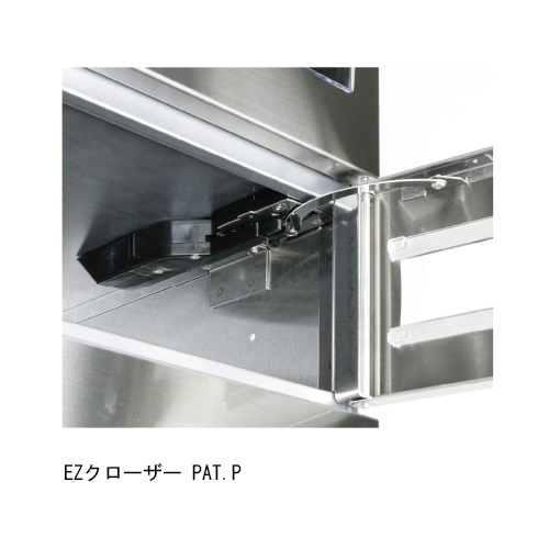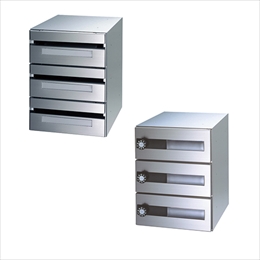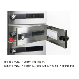 ・材料に高純度フェライト系ステンレスを採用した郵便受箱です。 ・一戸あたりの箱寸法がH120×W280×D400(mm)の多段式で施工性に優れ、メールコーナーやエントランスホールなど、設置スペースの限られた集合住宅に最適な省スペースタイプです。 ・扉にはEZクローザーを装備して扉が閉まる際の強い衝撃音を防止します。 ・投入口から手を入れて簡単に郵便物が盗られないよう盗難防止にも配慮されています。・差入口プレートが手前に持ち上がるため投函時の打撃音が軽減されます。 ・角2封筒が収納できます。
