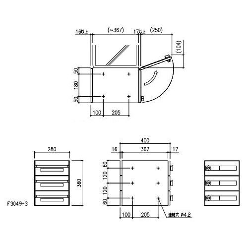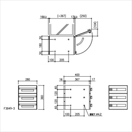 [仕様]屋内用 [本体]フェライト系ステンレス NO.4仕上 0.7t ヘアライン仕上 0.8t [扉]フェライト系ステンレス ヘアライン仕上 0.8t [差入口プレート]フェライト系ステンレス ヘアライン仕上 0.8t [名札]ポリカーボネート樹脂 [投入口]W250mm×H30mm [単体重量]7.5kg [寸法]W280×H360×D400mm