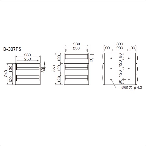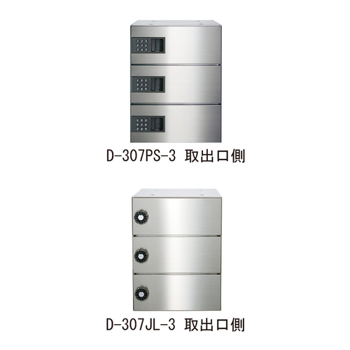・「横型:前入後出」タイプです。 ・D-307PS 200通りの鍵違いが可能です。 [品番/呼称]D-307PS-3 [サイズ]H360mm、W280mm、D380mm [重量]6.0kg [材質]SUS304 [仕上げ]ヘアーライン [ご注意] ・屋内仕様です。防水型ではありませんので屋外への設置は強い風雨や諸条件によって雨水が浸入することがあります。屋内または雨がかからない場所へ設置してください。 ●投入口サイズ:250mm×30mm ●錠前:静音プッシュ錠