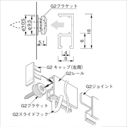 ・推奨荷重:5kg(ネジピッチ300mm以内) ・レールのジョイント及び端部の50mm以内に、専用のG2ブラケットで取付けてください。