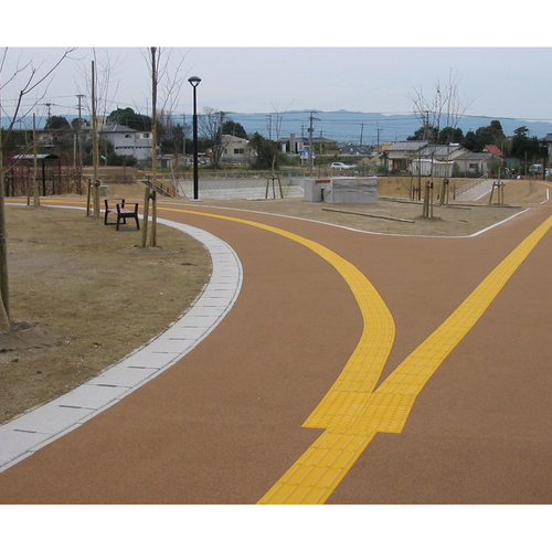 ・雨の日でも滑りにくく、水溜まりもつくらないので、歩道をより安心・安全な場所にします。 ・クッション性に優れたゴムチップ製なので足腰への負担を軽減します。 ・透水性が良好で水溜まりができにくく、滑りにくいゴム素材なので、外構舗装材として最適です。 ・より識別性を向上させたJIS T 9251に準拠した凹凸形状です。 [品番/呼称]LN3310-Y [サイズ]300mm×300mm×10mm [重量]1.1kg [材質]EPDM系カラーゴムチップ [ご注意] ・板厚は10mmあります。線状、点状の突起の高さはプラス5mmあります。 ・納期:ご確認ください。