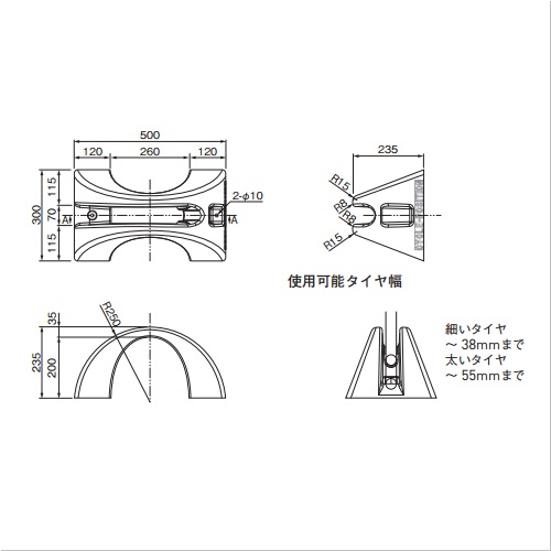 ・壁から300mm以上は離して設置してください。 ・複数設置する場合は、600mm以上離して設置してください。 ・使用可能タイヤ径は、18〜28インチです。
