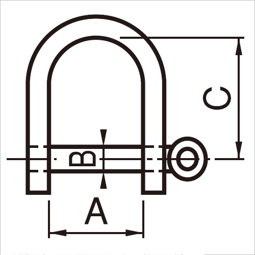 連結部分を回転させることにより太いロープ、チェーン等も容易にセットできます。 [品番/呼称]NS-6 [サイズ]A12mm、B6mm、C24mm [重量]23g [材質]SUS304 [仕上げ]光沢バレル研磨 [耐荷重]170kgf