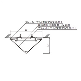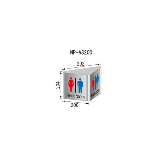 [品番/呼称]NP-AS200 [サイズ]H204mm、W292mm、D142mm [重量]1410g [材質]表示基板:SUS HL 仕上 フレーム:アルミ型材アルマイト仕上 キャップ:樹脂成型品 塗装仕上 ブラケット:アルミ型材アルマイト仕上 表示方法:UV印刷 [備考]表示基板は差替えが可能です